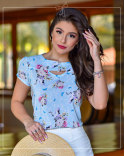Blusinha feita em crepe em uma linda estampa com recorte na gola e botões. Tecido maleável com ótimo caimento, tem superfície levemente acetinada com um toque bem macio.